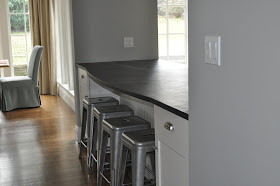 Here are the Tabouret stools. Aren't they great?! Did I mention they were only $50 each - I am still giddy about this...you can find them here. What I like: Aesthetically I like their lines and the way their color ties in with the stainless steel in the kitchen. I love how four stools (and children) fit. I also like how they push in and make a clear pathway for walking by. I don't like how cold they are to sit on in the morning and how uncomfortable they are with out a back. I also worry they are just too industrial looking (a family lives here after all!)
