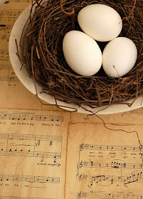 The veneer was chipped and bubbled and beyond her ability to repair. So, she decided to paint it and then cover it with antique sheet music. Isn't this a wonderful effect?